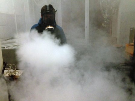 Следует отметить, что фогация должна производиться только профессионалами, поскольку только они обладают нужными знаниями в этой сфере. Самостоятельно человек не может производить такую обработку, поскольку это может быть опасным. Профессионалы же работают в специальных защитных костюмах и масках. Применяемое специалистами оборудование способно позволить сделать обработку эффективней и качественней. Специальные генераторы оказывают ошеломительный и поражающий эффект по насекомым, уничтожая большую часть вредителей. Кроме того, во время обработки туманом производится тщательная уборка в складском помещении, благодаря чему удается достичь еще лучшего эффекта. Такой обработки хватает на длительное время, во время которого вредители точно не посетят склад и не испортят ничего. Для того, чтобы заказать уничтожение паразитов в помещении, вам нужно обратиться в городскую службу СЭС по уничтожению вредителей города. После подачи заявки с вами свяжутся специалисты и договорятся о встрече, далее они оценят масштаб работы и подберут нужный для обработки инсектицид. Именно благодаря профессиональному подходу к обработке производятся точные вычисления количества необходимых препаратов. А после этого следует процесс непосредственной фогации, которая займет совсем немного времени.